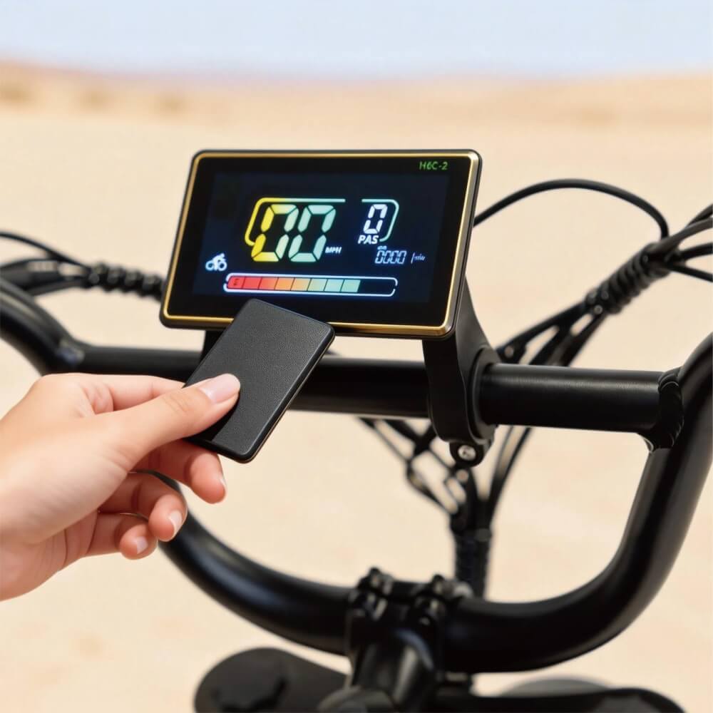 Unlock your bike instantly with NFC card or smartphone. The full-color TFT screen displays speed, battery, navigation, and riding mode for a connected, convenient experience.